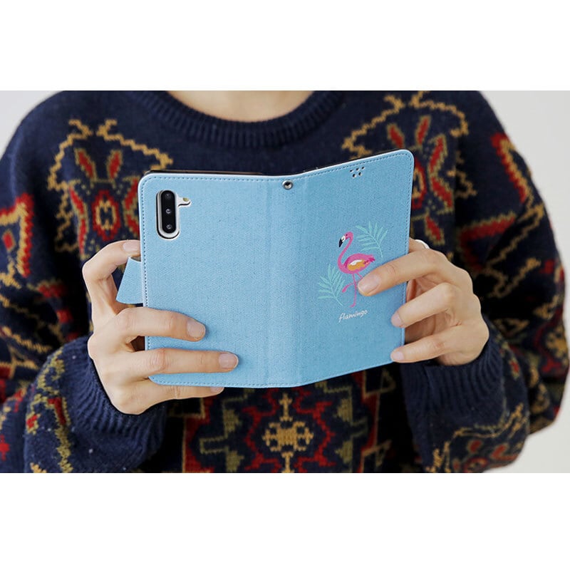 iPhone16 アニマル 動物 ワンポイント イラスト くすみカラー フラミンゴ ダイアリー PUレザー PU 手帳 カード収納 ポケット マグネット 上品 可憐 オトナ可愛い ストラップホール アンドロイド iPhone ふんわり 【P0000DGJ】