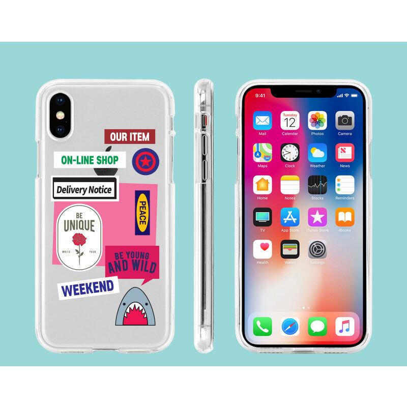 iPhone17/17Air/17Pro/17ProMax 透明 クリア バッチ シール ラベル スティッカー デザイン カワイイ 英語 iPhone ギャラクシー【P0000DIP】