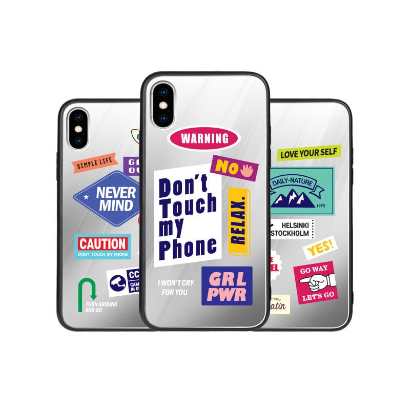 iPhone17/17Air/17Pro/17ProMax ミラー 鏡面 キラキラ バッチ シール ラベル スティッカー デザイン カワイイ 英語 iPhone ギャラクシー【P0000DIQ】