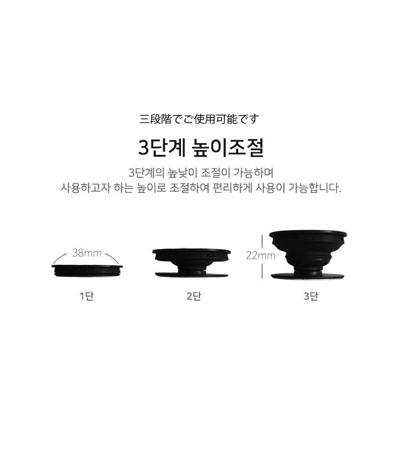 ●スマホリングはPOPUP式で3段階で高さを調整できます
