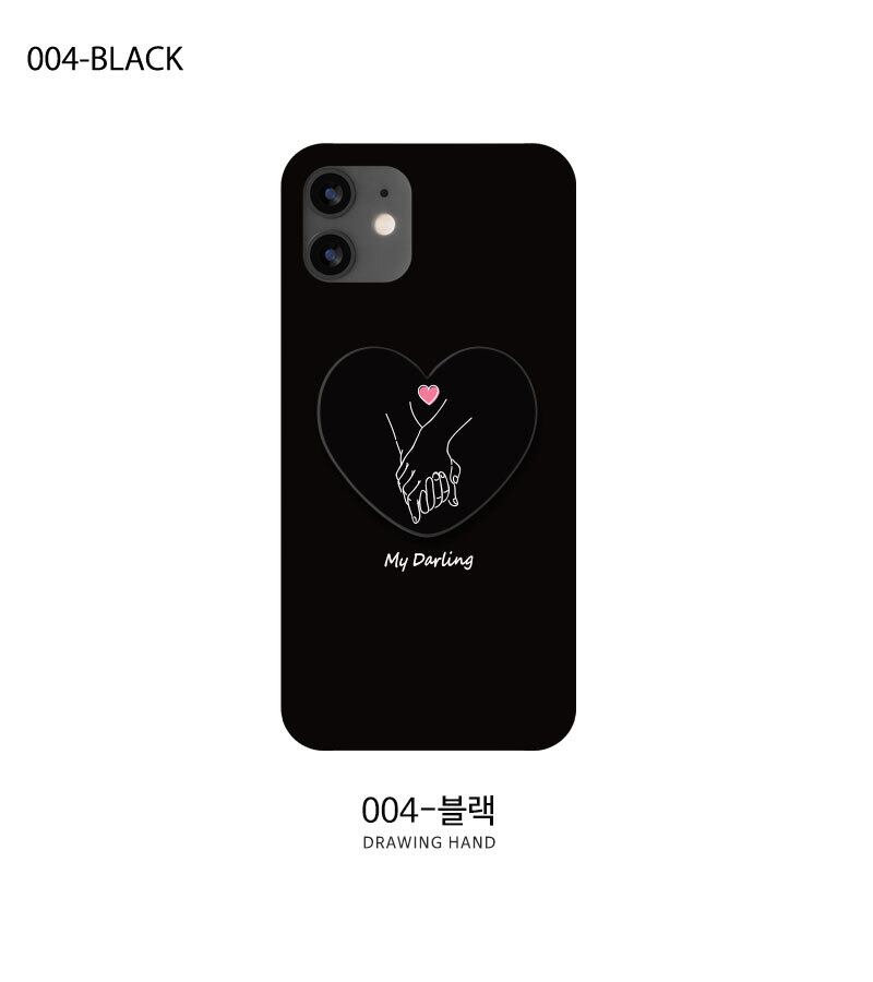iPhone17/17Air/17Pro/17ProMax POPリング ハート ハードケースセット スマホスタンド おしゃれ 可愛い 手描き ドローイング Hand 手 カップル モノトーン 【STI-622/P0000FEB】