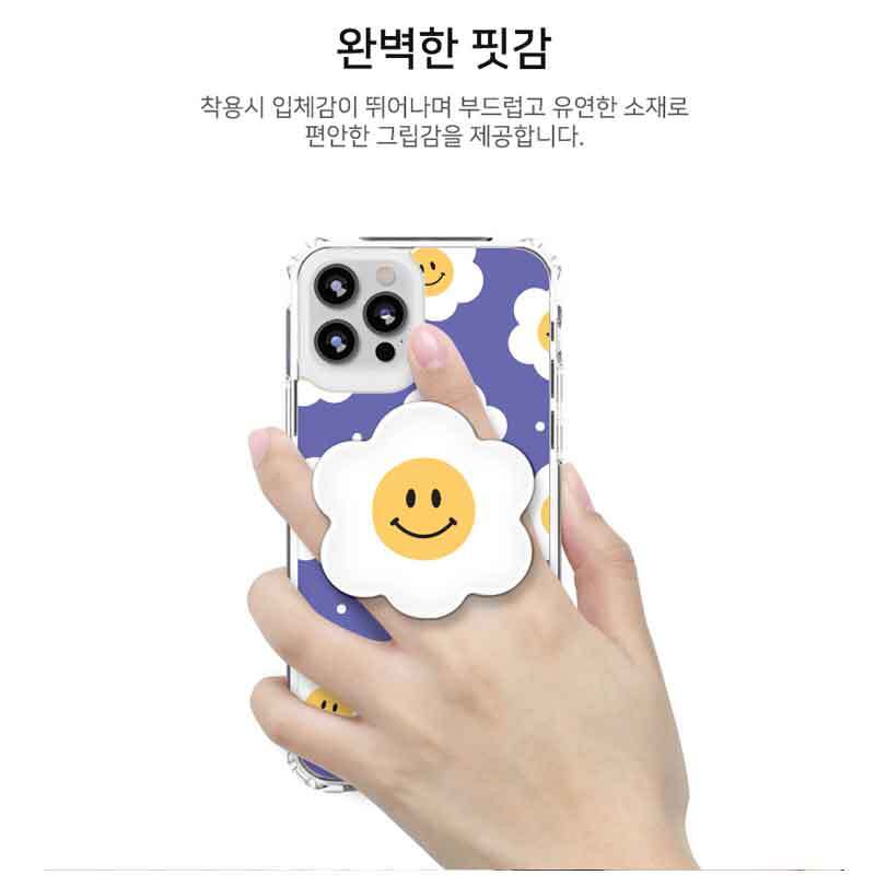 iPhone17/17Air/17Pro/17ProMax ギャラクシー スマホリング スマホスタンド 可愛い お洒落 ホールドリング スマイル フラワー デイジー チェック ガーリー 透明 クリア 耐衝撃【STI-960/P0000HCM】