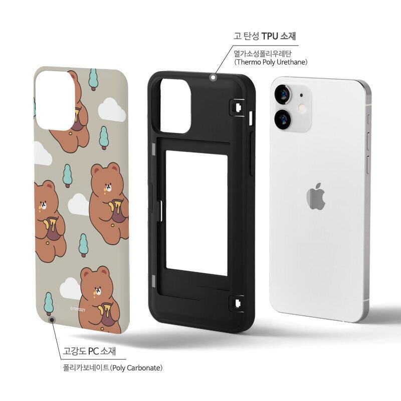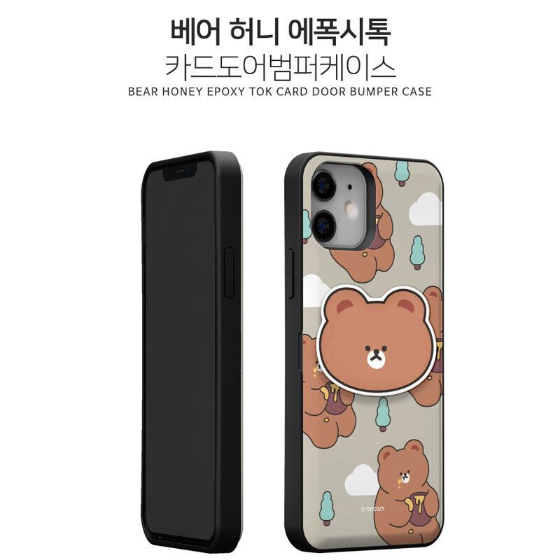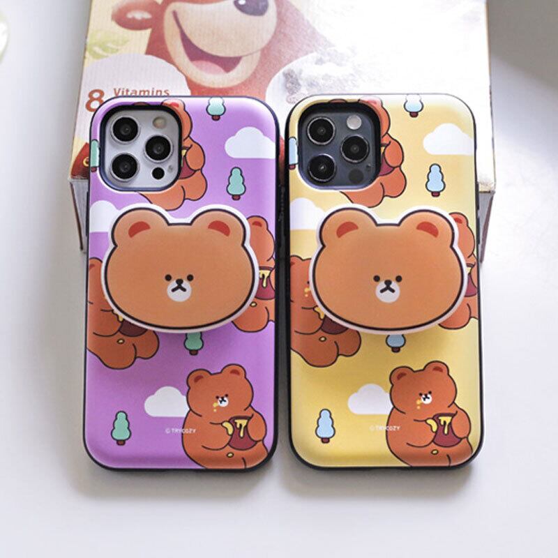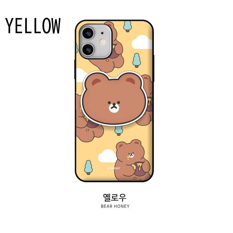 iPhone17/17Air/17Pro/17ProMax スマホリング スマホスタンド 可愛い お洒落 ホールドリング クマ BEAR 動物 アニマル UVプリント カード ミラー スタンド【STI-999/P0000HHC】