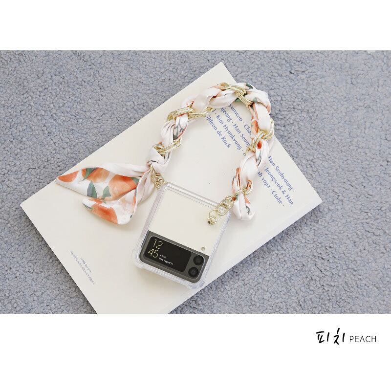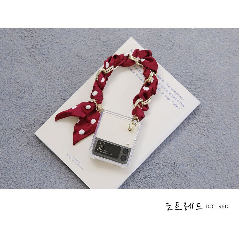 ギャラクシー Zフリップ3/4 GALAXY ZFlip ハードケース カワイイ 折り畳み コンパクト 薄型 スカーフ チェーン 韓国ファッション ドット 水玉 ストラップ【STI-1031/P0000HSF】