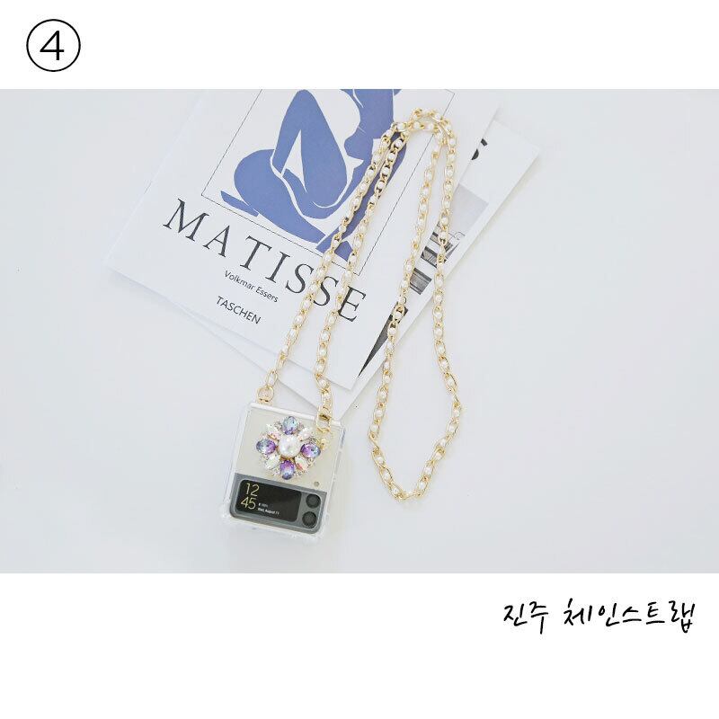 ギャラクシー Zフリップ4/3 GALAXY ZFlip ハードケース カワイイ 折り畳み コンパクト 薄型 ロング チェーン 韓国ファッション ストーン キラキラ ロングストラップ 斜め掛け【STI-1032/P0000HSE】