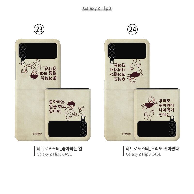 ギャラクシー Zフリップ3/4/5/6/7 GALAXY ZFlip ハードケース カワイイ 折り畳み コンパクト 薄型 UVプリント イラスト ハングル 韓国語 レトロ 韓流 韓国雑貨【STI-1074/P0000EUD】