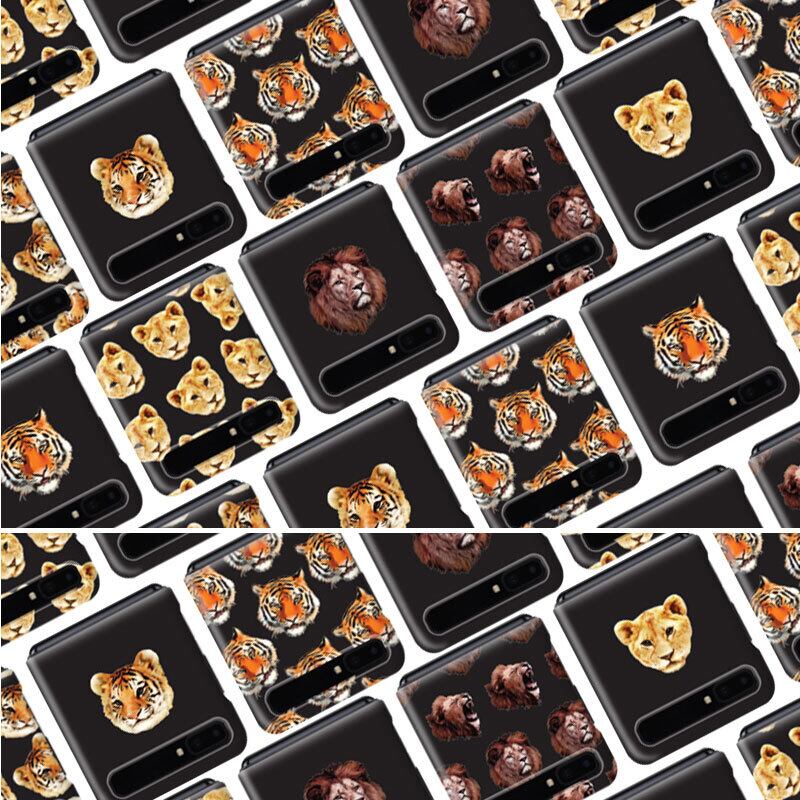 ギャラクシー Zフリップ3/4/5/6/7 GALAXY ZFlip ハードケース カワイイ 折り畳み コンパクト 薄型 UVプリント イラスト アニマル 動物 虎 ライオン タイガー【STI-1075/P0000EVG】