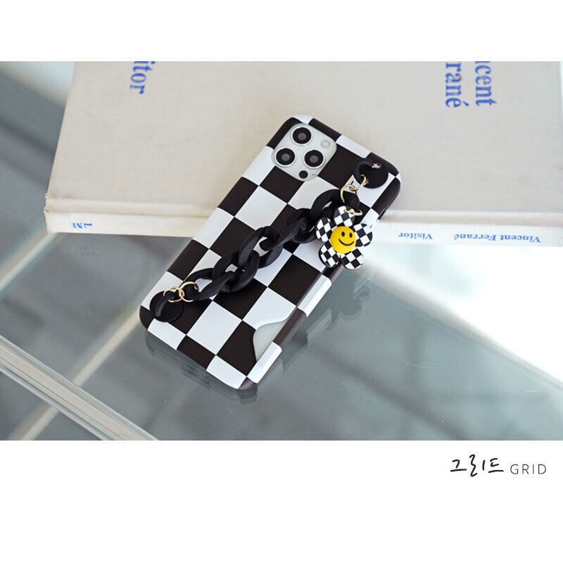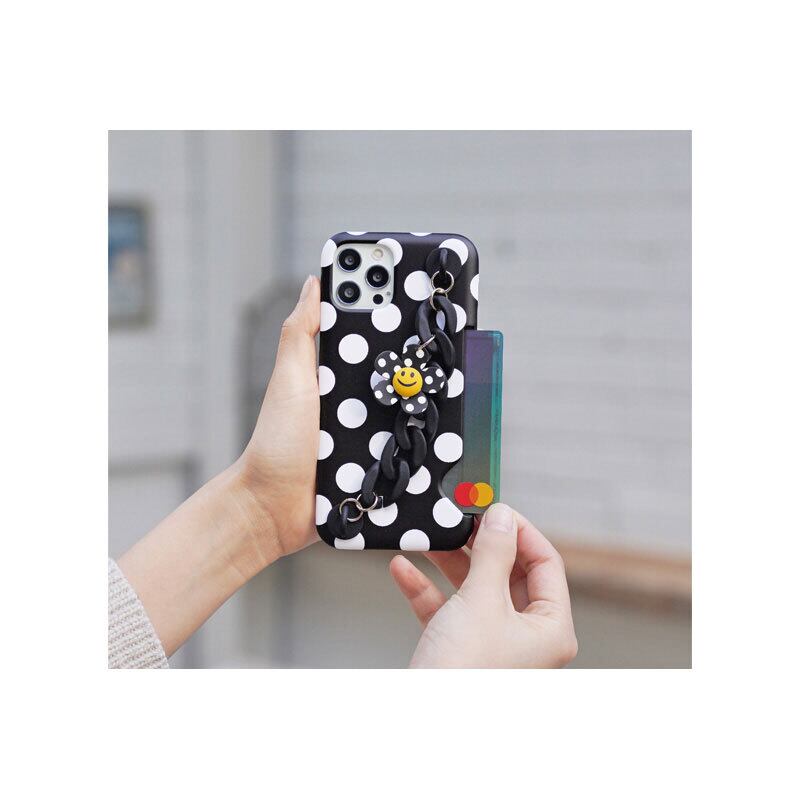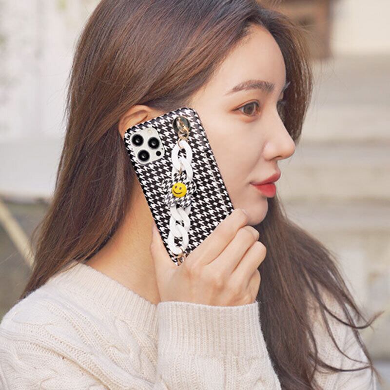 iPhone16/16Plus/16Pro/16ProMax ハンド ストラップ 耐衝撃 モノトーン ハンドチェーン ドット 水玉 チェック スマイル フラワー【STI-1080/P0000ICN】