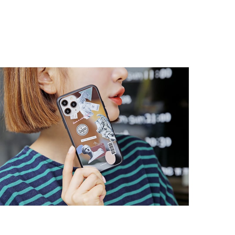 iPhone17/17Air/17Pro/17ProMaxミラー 鏡 スリム iPhoneケース GALAXY ギャラクシー コラージュ 絵画 落書き アレンジ おしゃれ【STI-1191/P0000EBY】