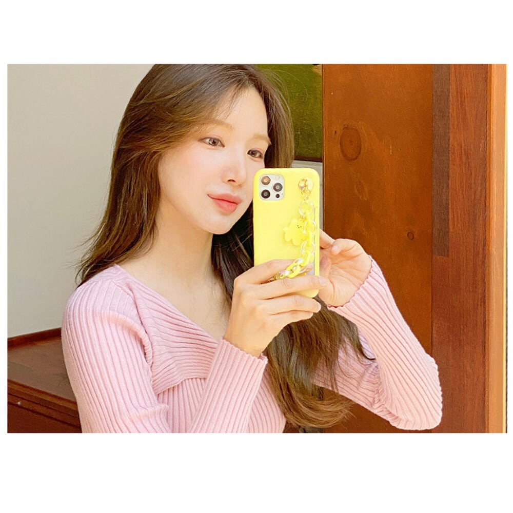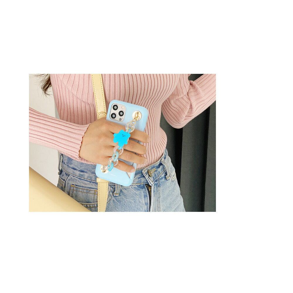 iPhone16/16Plus/16Pro/16ProMax スリムカバー 薄型軽量 プリント ハンドチェーン ストラップ チャーム ベアー クマ カード ワンカラー 無地 甘め【STI-1262/P0000JPP】