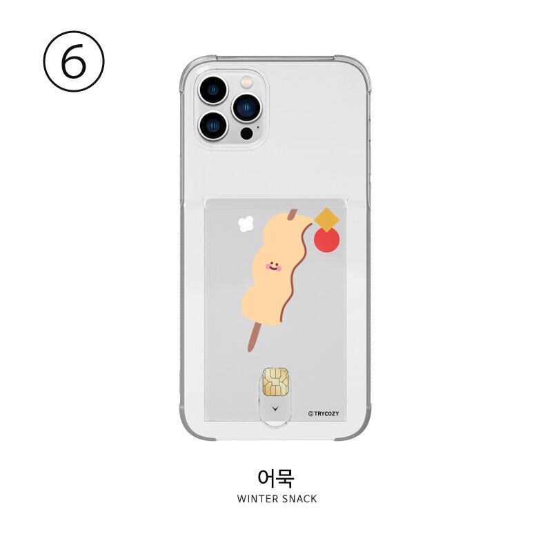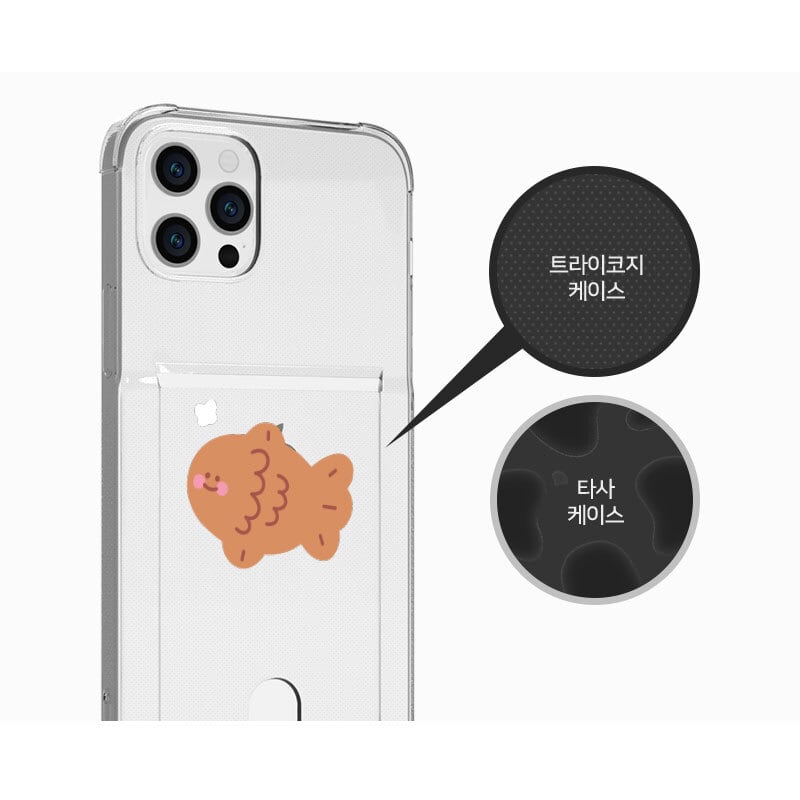 iPhone17/17Air/17Pro/17ProMax スマホカバー クリア 耐衝撃 透明 カードポケット ワンポイント 食べ物 イラスト プリント さつまいも 焼き芋 たい焼き 栗 マロン【STI-1426/P0000ILR】