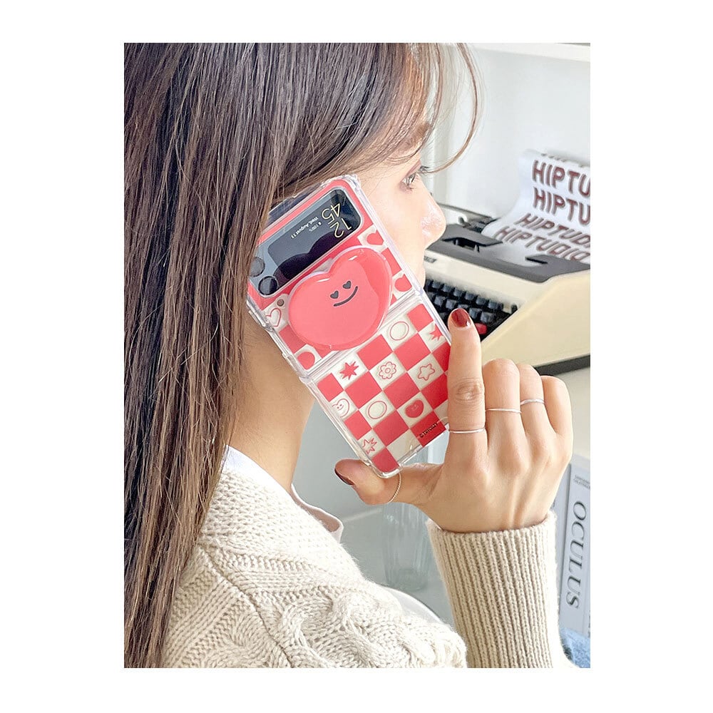 ギャラクシー Zフリップ3/4/5/6 GALAXY ZFlip セット リング スタンド 透明 クリア 耐衝撃 ハードケース カワイイ 折り畳み コンパクト 薄型 プリント ゆるい イラスト【STI-1467/P0000KQI】